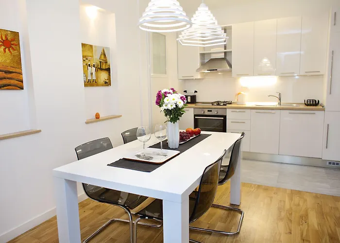 Kuhinja je potpuna s aparatima za pripremu čaja i kave, mikrovalnom pećnicom, velikim hladnjakom i štednjakom bitnim za kuhanje. Autobusno stajalište HNK - Izlaz udaljeno je 5 minuta hoda od ovog objekta.
